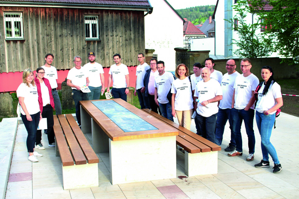 Zunächst besichtigte man den evangelischen Kirchgarten und zeigte sich begeistert. Pünktlich zur Gartenschau ist ein sehr attraktiver Park entstanden. Irrgarten, neue Bänke und vor allem der Altartisch laden zum Verweilen ein.
